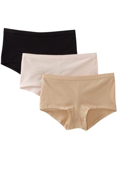 - Hanes boyshort panties, 3-pack, with a sporty waistband that won’t pinch or bind