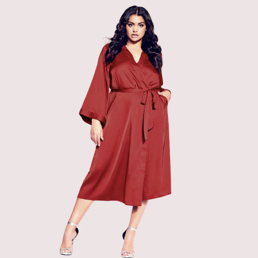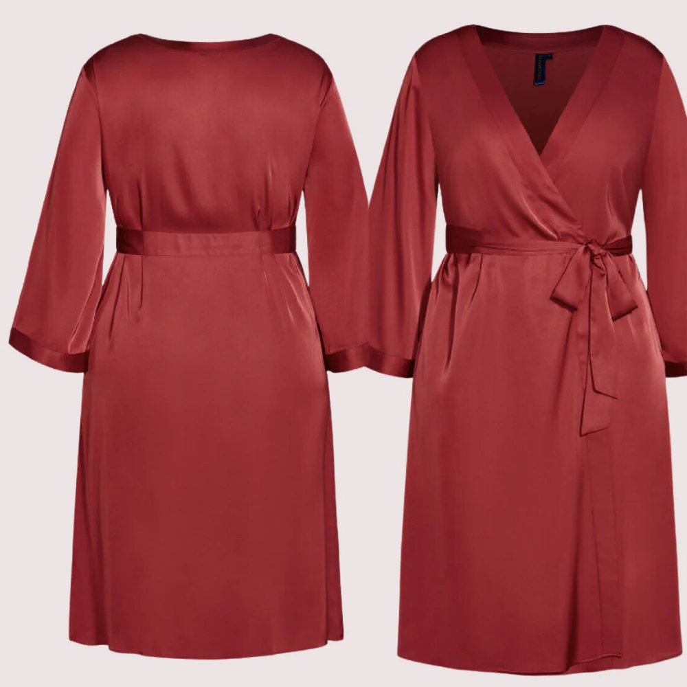 The 5XL-6XL Silk Satin Robe for Plus Sizes, made for comfort and style. This robe is crafted from soft, smooth silk satin that feels great on your skin. It drapes beautifully to flatter your curves. A matching silk belt lets you adjust the fit at the waist. Elegant lace trim on the sleeves and hem adds a sophisticated touch. Perfect for relaxing at home or special nights, this robe blends style and comfort effortlessly. Add this beautiful silk satin robe to your collection to feel glamorous and confident.