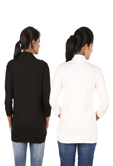 Features Of  Black And White 3/4 Sleeves Pack Of 2 Shrugs