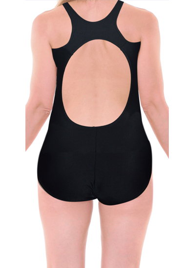 Black Plain Cutout Back Sporty Racer Style Swimsuit