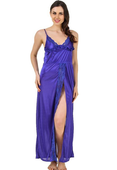 Blue Front Sexy Slit Cut Long Nighty