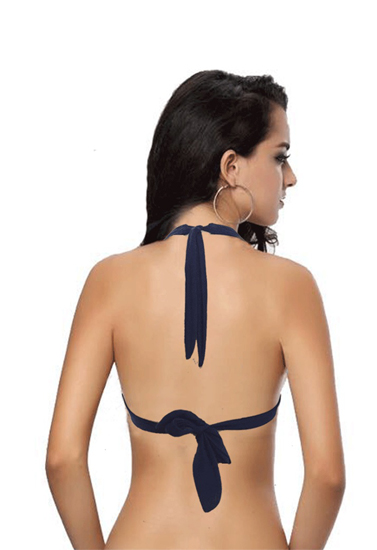 Feel confident and comfortable in this Dark Blue Color Halter Beach Bikini Top. It keeps you looking stylish and fashionable at the pool or the beach. This halter style bikini top features slots to remove cups and straps tie around your neck and back, halter-style, to create a completely different look. Made of polyamide and elastane for long wear. You can coordinate this piece with your favorite bikini bottoms for endless possible combinations.