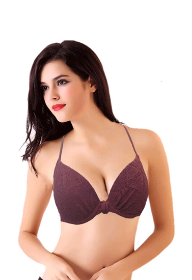Spend your summer with this Dark Peach Crochet Push Up Halter Bikini Top in your warm weather wardrobe. It is chic and fashionable for the pool or the beach. It is made of polyamide with spandex for a little stretch and offers full coverage, so you can look and feel your best. Featuring a crochet design that provides texture and depth, this piece has a flattering shape. The thin straps of bra tie around your neck and back, halter-style, to create a completely different look. This unique item coordinates with your favorite bikini bottoms. For a new style, try this underwired bra.
