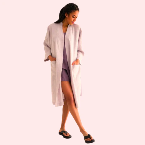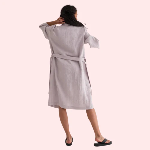 Enjoy the perfect mix of style and comfort with our premium linen robe. Made from high-quality linen, this robe is light and soft on your skin. The elegant design has a tie waist and deep pockets, adding a stylish touch. Perfect for both mornings and evenings, this robe keeps you cool and comfortable. It’s ethically made and built to last. Treat yourself to the luxury of our premium linen robe today.