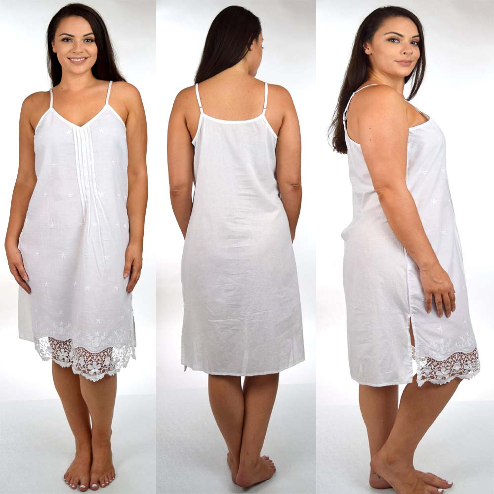 Elegant cotton sleepwear for women has an Art Deco aura.This nightwear is elegant and refined and especially loved by women who appreciate high quality Cotton fabric .The cut is A-line and length is to knee.Thin shoulder straps won’t fall off your shoulders or break.The entire front of this cotton gown has been pin tucked .