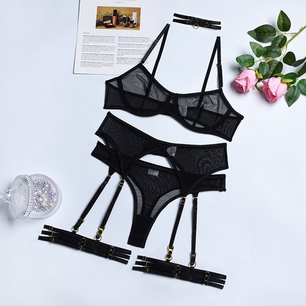 Enchantingly express your erotic side and showcase your seductive spirit with French Daina five piece bridal lingerie set with matching garter , this cute lace bra and sexy see through  panties and garter is great if you are in search for high quality and beautiful women’s lingerie.