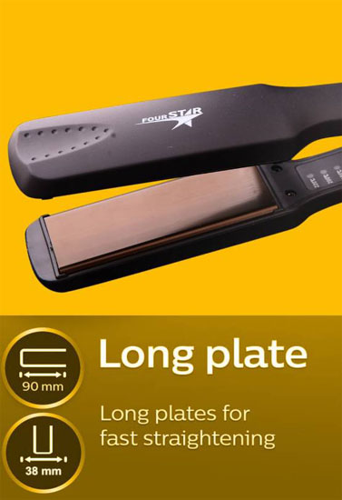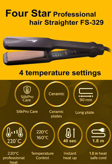 Ideal Four Star FS-329 Hair Straightener is dedicated to helping women achieve beautiful hair they’ll love! Whether women desire gorgeous blowouts, big enviable waves, striking straight locks, or the perfect fashion accessory to complete the look, FS-329 has the styling tools you desire. Quick and Smooth Results with this easy-to-use flat iron designed for creating the latest hair trends in all hair types. Ceramic-coated plates help protect hair from over-styling with even heat distribution that penetrates and styles from the inside out for smooth, shiny results. With 40W high heat for fast styling and with silicone finger grips make it comfortable and effortless.
