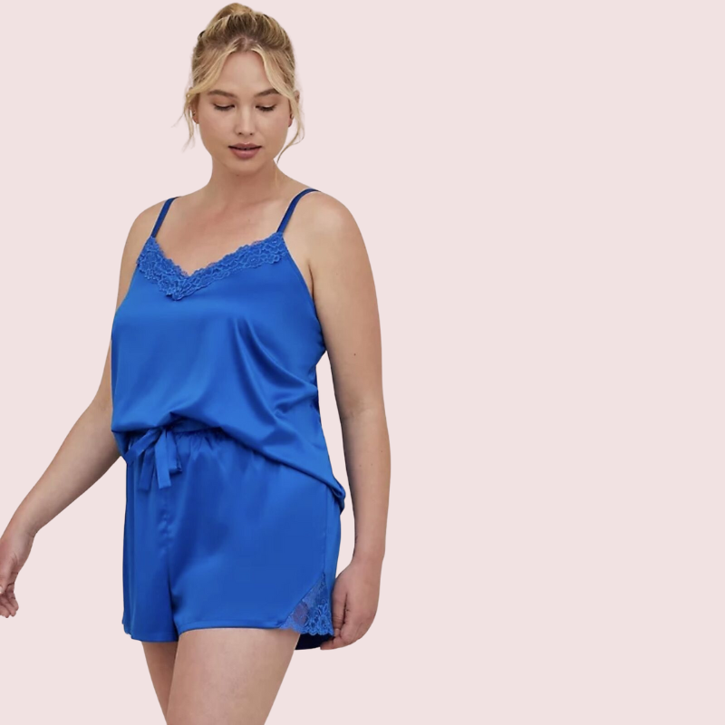 Lace Trim Satin Short Camisole Set for Her