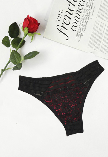 Ladies Black Floral Lace Thong