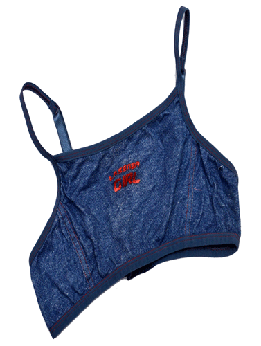 Lasenza Denim Print Kids Bikini Top is perfect poolside look for you little angel with its denim print . This  bikini top features bandeau style and adjustable straps for a flattering poolside look and also with adjustable hooks. Complete the look with the matching kids Brief from our online lingerie and swimwear store Snazzyway .