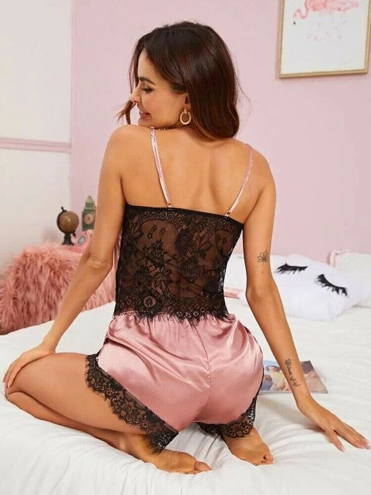 You’ll be saying no to nights out when you see Luxury Silk Satin lace cami shorts set . Cozy up in a coordinating pyjama set, drift off in a night dress or go for slumber party success in a statement onesie. Catch your beauty sleep in the best basics