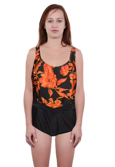 Lycra Black Orange Floral Print One Piece Swimsuit gives a modest yet fashionable look. It features a stylish and comfortable design. It is made with polyamide for comfort and spandex material for a stretchy fit. It is created for plus size women; featuring this one-piece gives the look of a two piece It has floral print, wide straps and soft cup. Built-in shelf bra has an elastic underband for fit and additional support. The tankini top helps provide even fuller coverage and hides problem areas swimsuit. Grab this cute swimsuit for the beach or pool and pair with your favorite fun sandals for some summer fun. Available in Assorted Colors. The women’s one-piece swimsuit is available in XXL size.