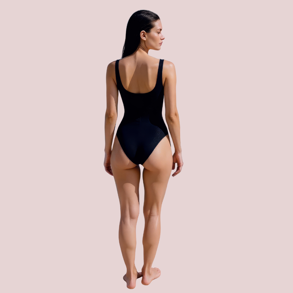Turn heads with the Midnight Zip-Front One-Piece Swimsuit, designed for both style and confidence. Crafted in a sleek black finish, this swimsuit features a deep scoop neckline with a functional front zipper for a touch of bold detail. The high-cut legs elongate your silhouette, while the wide straps provide comfort and support. Perfect for poolside lounging, beach holidays, or chic resort wear, this piece combines elegance with modern allure.