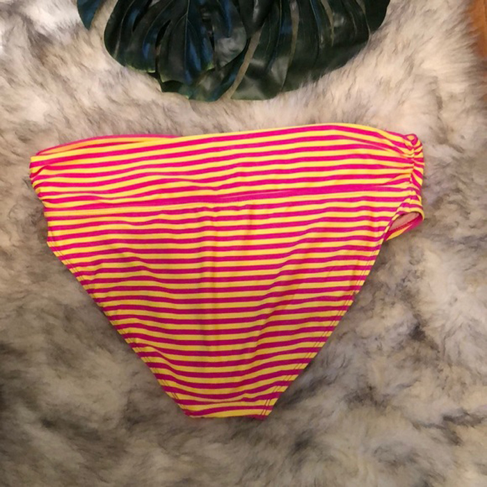 Start your day full of confidence with Old Navy Pink/ Yellow Striped Bikini Bottom. New look, same product! Everyday you can feel your best knowing that these panties were designed especially with you in mind. This panty collection now features an improved fit as well as a comfort covered waistband for ultimate, all day comfort against your skin. To keep you even more comfortable while you go about your day, the leg bands are covered with super soft cotton fabric to eliminate binding and pinching.
