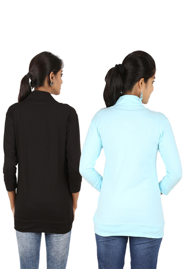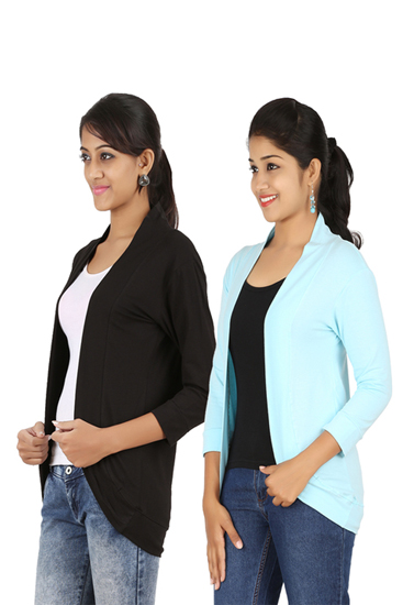 Features Of Pack Of 2- Black And Aqua Blue 3/4 Sleeves Shrug