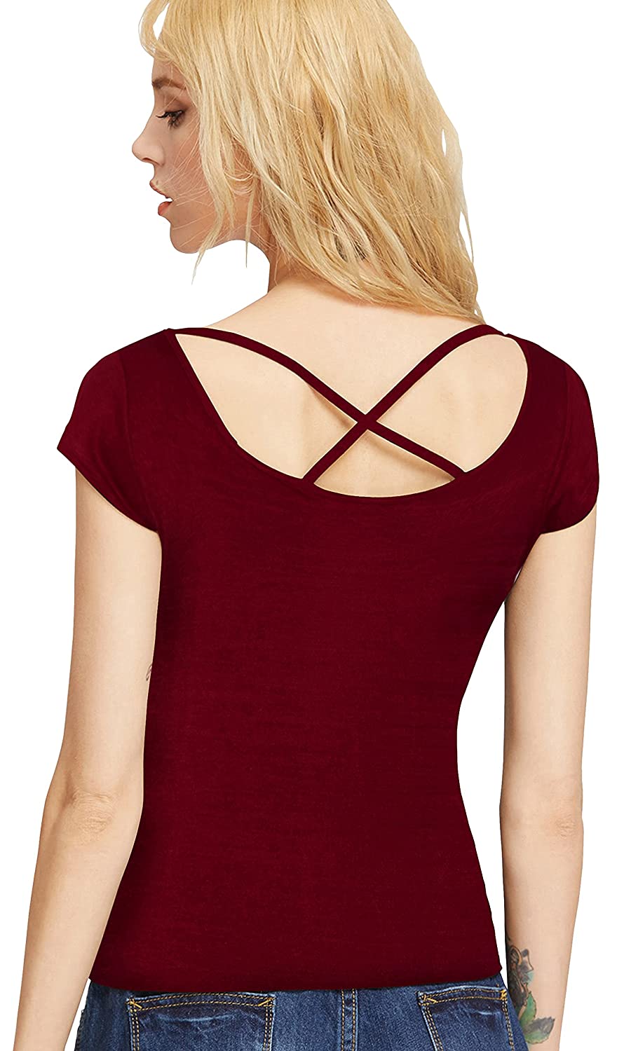Plain Color Designer Scoop Neck Short Sleeve Tee T-Shirt for Girls
