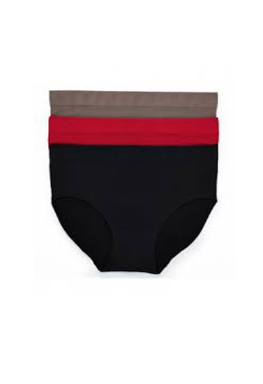 Update your wardrobe basics with Plus Size- Bpc Everyday Smoothing Firm Control Brief 3-Pack They feature thoughtful details such as a soft wide waistband, comfort covered leg hems and a tag free design to reduce irritation throughout the day. These Plus Size- Bpc Everyday Smoothing Firm Control Brief 3-Pack + 1 Free Bra are made from cotton and spandex, making them breathable and durable. They have a contemporary hipster silhouette that offers a moderate rise that hits slightly above the hips while providing full seat coverage. These panties come in a convenient three pack of black, brown and red color.