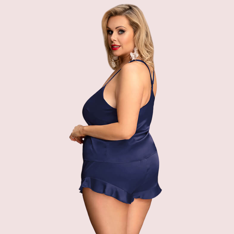 Our Plus Size Cami Top and Shorts Nightwear Set, designed for comfort and style. This set features a soft, breathable fabric that feels great against your skin. The cami top comes with adjustable straps for a perfect fit, while the matching shorts have an elastic waistband for added comfort. Perfect for a cozy night in or lounging around the house, this nightwear set combines practicality with elegance.
