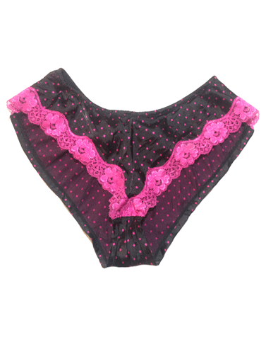 Secret Dotted Front Lace Black Brief from ultimate collection this brief is perfect for any woman’s lingerie collection. In black it has a magenta spotted and lace sheer detail in front that is a must-have this season.