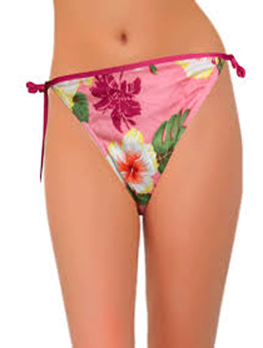 We love this cute Sexy Pink Both Side Tie Bikini Bottom from Snazzyway. All over cool multi color floral design with a gorgeous strips tie waistband. Moderate rear coverage with reasonable width sides. Match with a top from the Snazzyway range for a beautiful summer set.