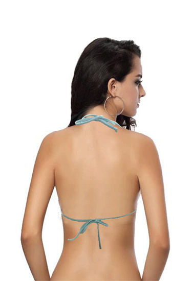 This Sky Blue Multi Colors Stone Studded Bikini Top makes a smart addition to any collection of swim apparel. Trimmed with rhinestones, it offers an eye-catching, unique appeal. This Sky blue Multi colors Stone Studded Bikini Top features Secure tie around neck and back, allowing you to choose your own snug fit and beautiful love embroidery design. Coordinate with a matching scoop bikini bottom for the ultimate swimsuit.
