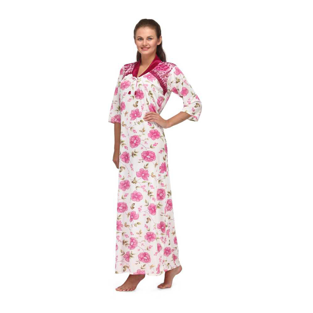 Floral Print Full Length Pink Women’s Nightgown which you can enjoy an uninterrupted sleep by slipping into this nightgown . Featuring a cool retro print and half sleeves lends a sensual feel to this nightwear .