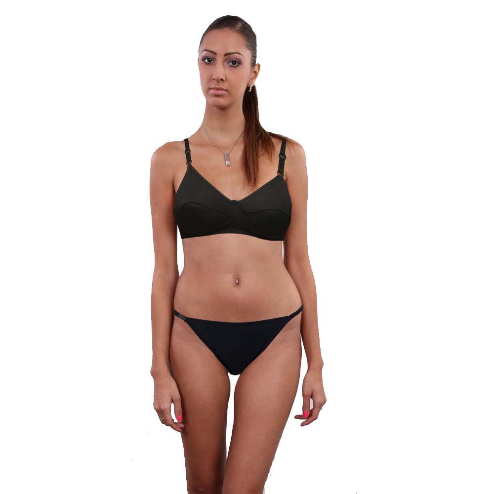 pure organic cotton black Bra and thong Set have been crafted in a soft organic cotton blend with added stretch for all-day comfort. Presented in classic pink color,while the fully adjustable shoulder straps and double hook and eye fastenings ensure a perfect fit.