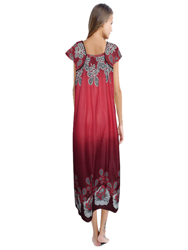 Red Floral Print Full Length Nighty  is soft and comfortable nightdress great for lounging around the house.Featuring half sleeves and red color floral print and square neckline.  More freedom during sleep with this nighty .