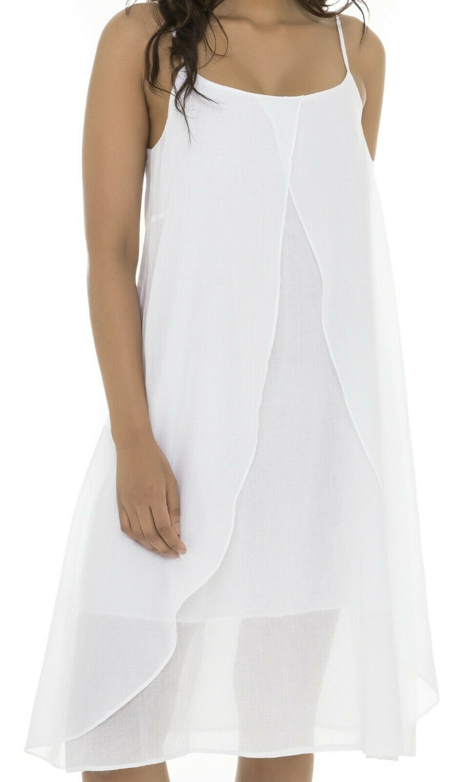 Vintage White double layers of soft nylon chiffon nightgown with with spaghetti straps. Ties around the waist with a matching chiffon belt.One size fits all due to the design and fullness of the gown.Perfect for family gatherings, walking the dogs as well as relaxing .