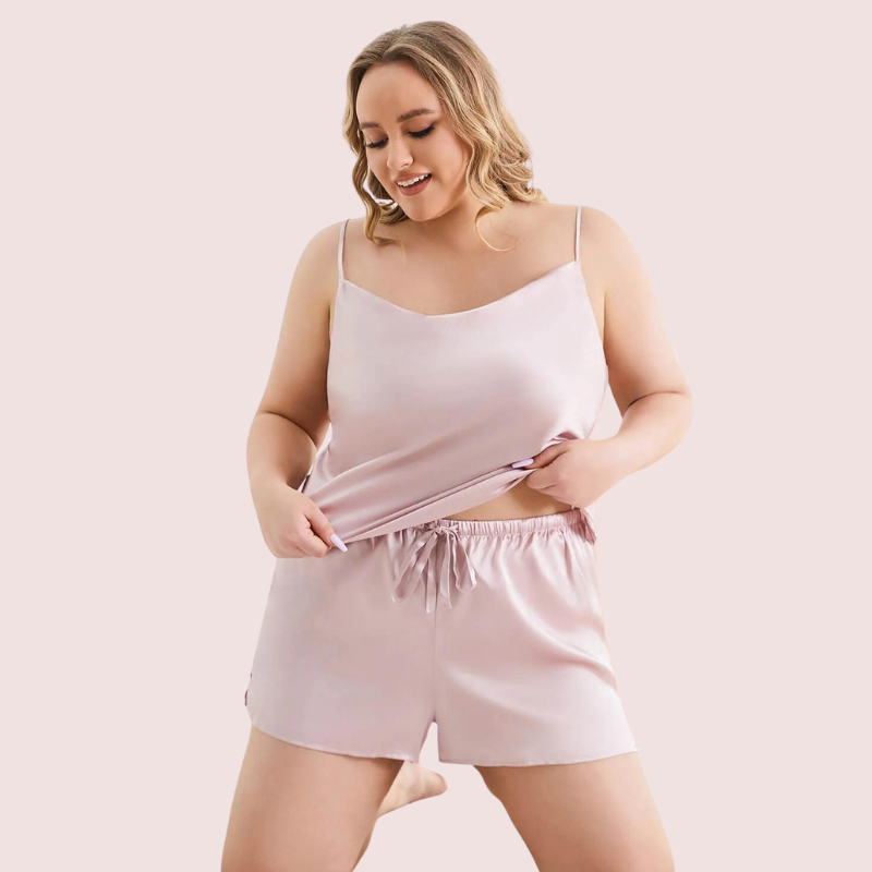 Our Stylish Plus Size Cami Top and Shorts Nightwear set, designed for both comfort and elegance. Made from soft, breathable fabric, this set feels wonderfully smooth against your skin. The cami top features adjustable straps for a perfect fit, while the shorts come with an elastic waistband for added comfort. Ideal for a cozy night in or casual lounging, this nightwear set effortlessly combines style and relaxation.