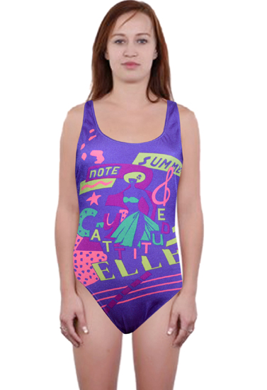 Get swimwear that’s fun and flattering with this Summer Note Printed Violet Bathing Swimsuit. Made with a polyamide and elastane blend ,this product is a smart addition to your swimming wardrobe. This word printed-style swim suit is a complete bathing ensemble. With an elasticized fit on the waist, you can move comfortably and without self-consciousness. The scoop neckline and plain style straps provide this swimsuit’s characteristic feminine silhouette. The word printed style looks awesome and has full coverage in the back. This product is fashionable and attractive and will add a nice retro touch to your beach or pool outing.