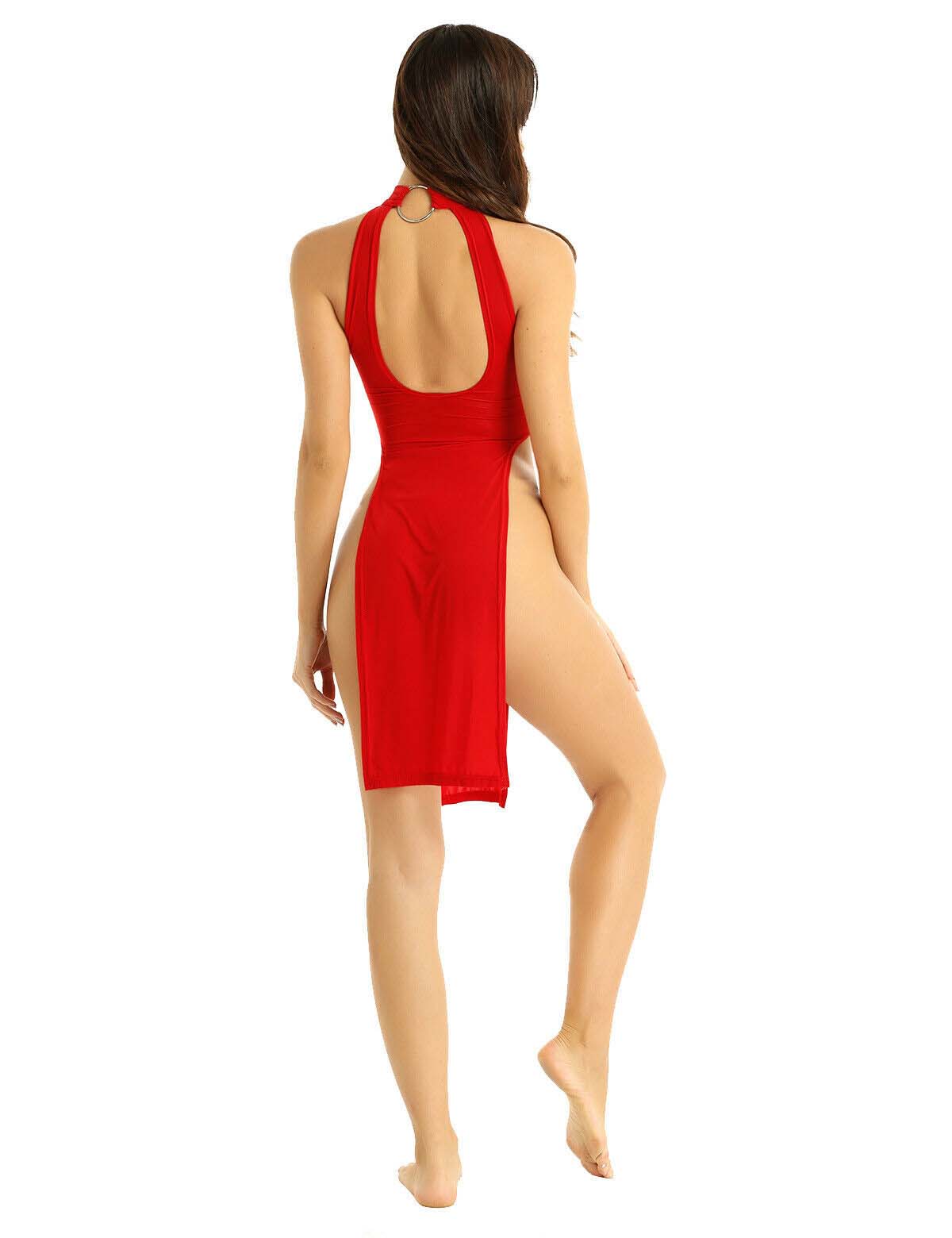 Floaty and feminine it may be, but don’t underestimate this dress provocative powers. With both side cuts revealing a plenty of skin, and sheer crepe over your curves, it’s teasingly revealing, teamed with the matching panty, or with nothing at all.