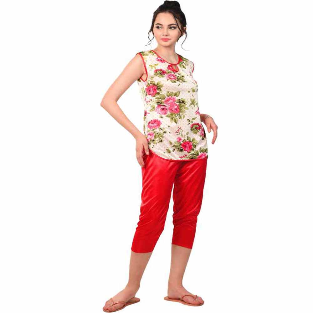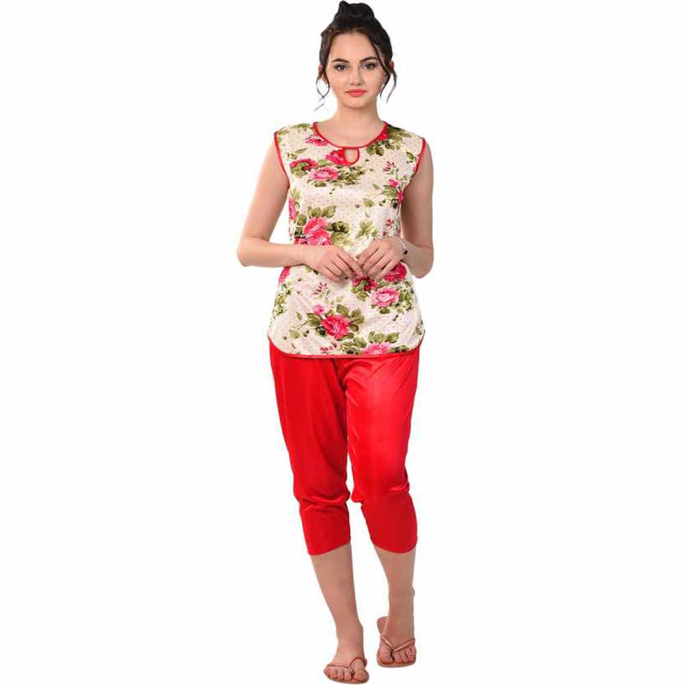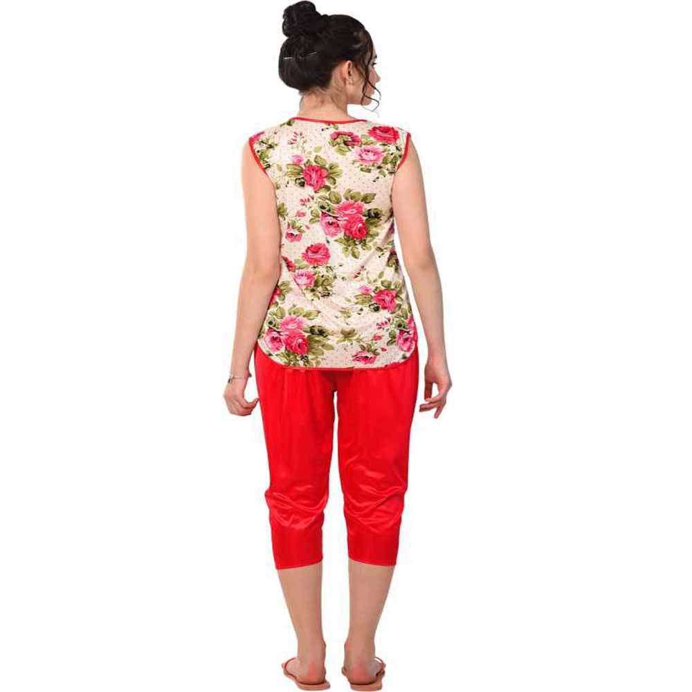 “Women” Floral Print Red Night suit Set