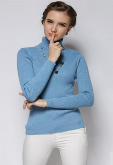 Women’s Cool Stripes Lake Blue High Neck Sweater knit from cashmere that’s as airy as it is sumptuous,this Lake Blue – turtleneck is a sleek style.