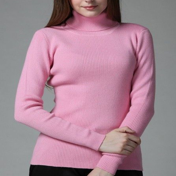 Women’s Smooth Cashmere Pink Turtle Neck Sweater