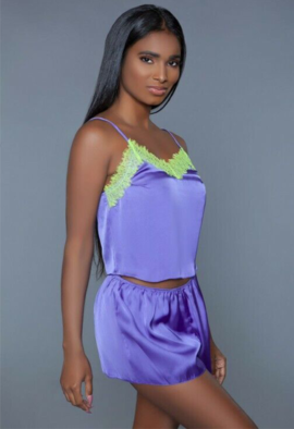 Lace trim Silk Satin blue lounge set